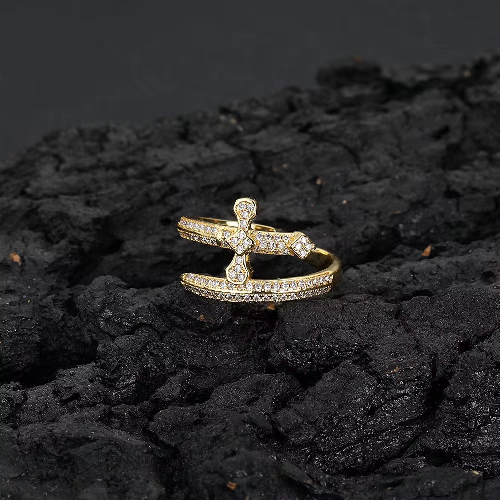 Iced Out Justice Sword Cross Ring – Gold & Silver Plated Adjustable For Women