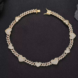 Iced Zircon Heart Cuban Choker Necklace for Women